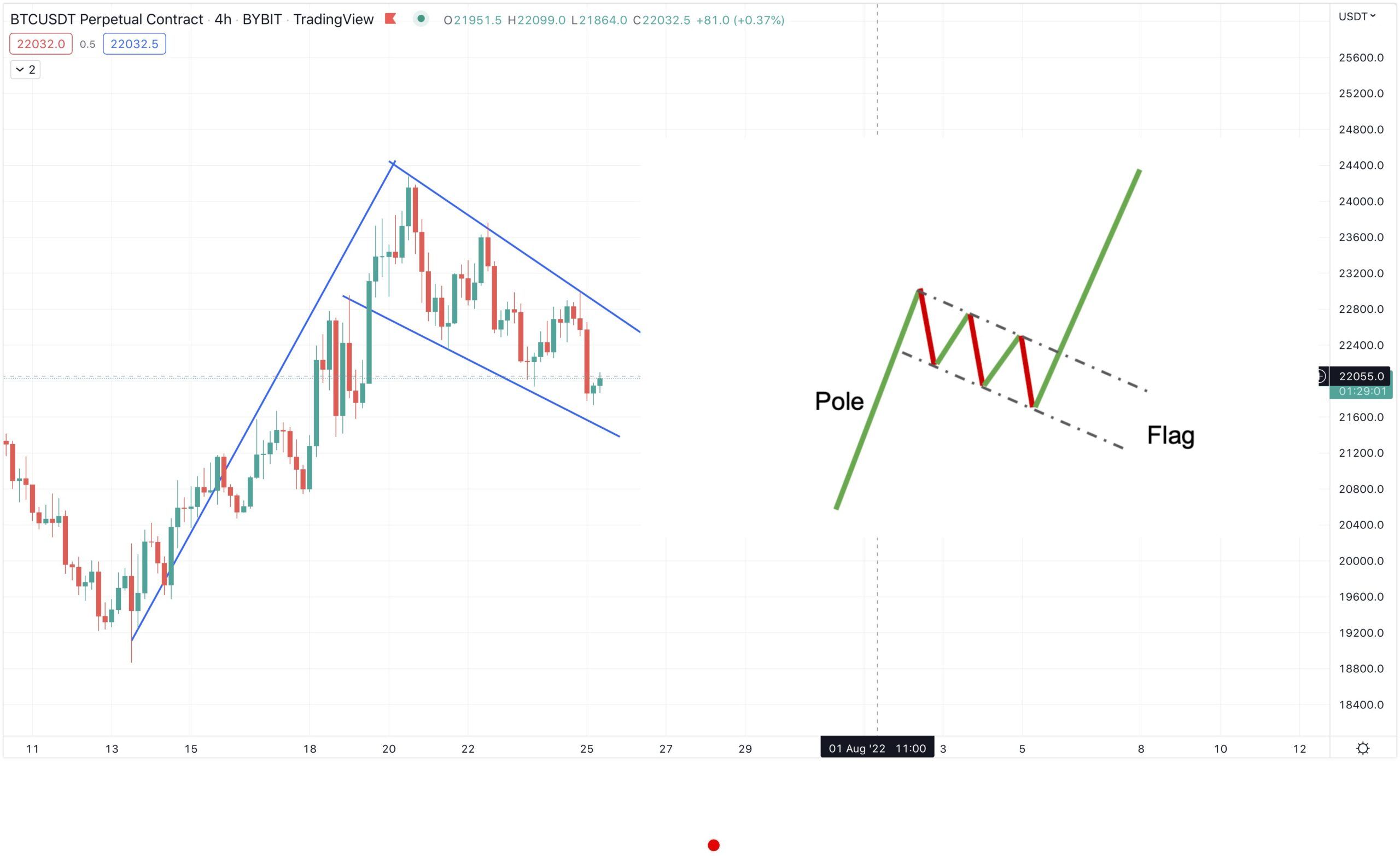 На потенциал позитивного движения монеты, по мнению ряда участников криптосообщества, также указывают результаты технического анализа. Например, многие видят на графике BTC фигуру «бычий флаг». По ее завершению, с точки зрения технического анализа, биткоин сможет выйти в рост.