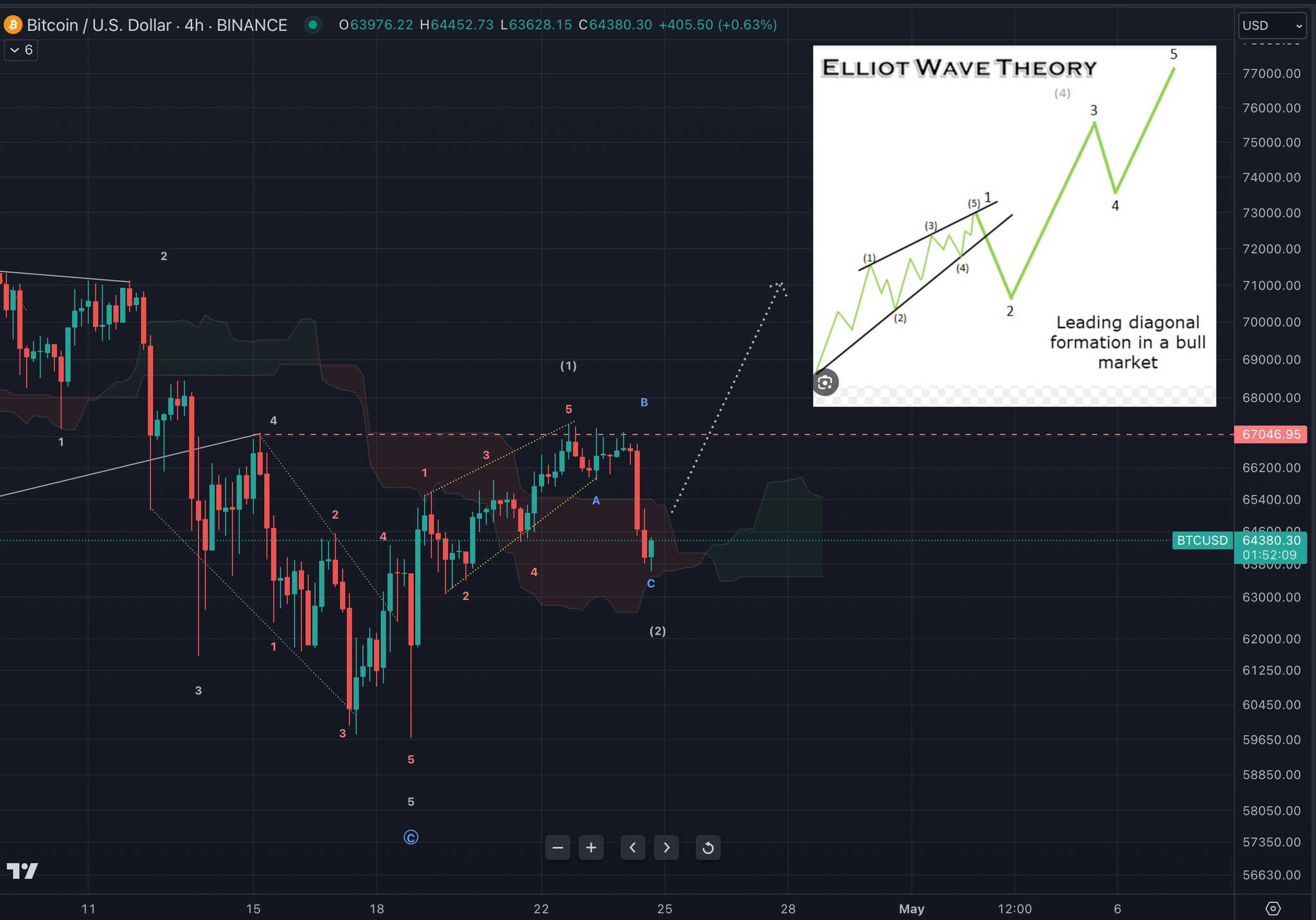 Экономист Mikybull Crypto напротив видит потенциал дальнейшего роста биткоина. Позитивный прогноз поддержал трейдер AltstreetBet. Он считает, что в мае BTC обновит абсолютный максимум на уровнях выше $80 000. Предполагаемую траекторию движения криптовалюты он обозначил на графике.