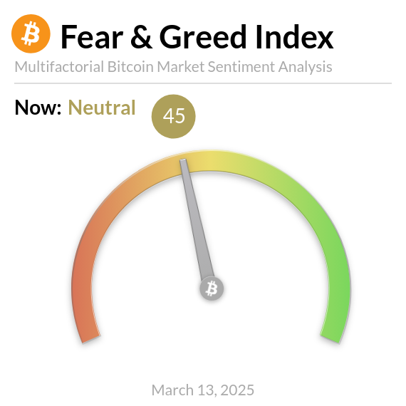 На улучшение настроений инвесторов в том числе указывают сигналы индекса страха и жадности биткоина. Он перешел с экстремальных уровней в нейтральную зону.