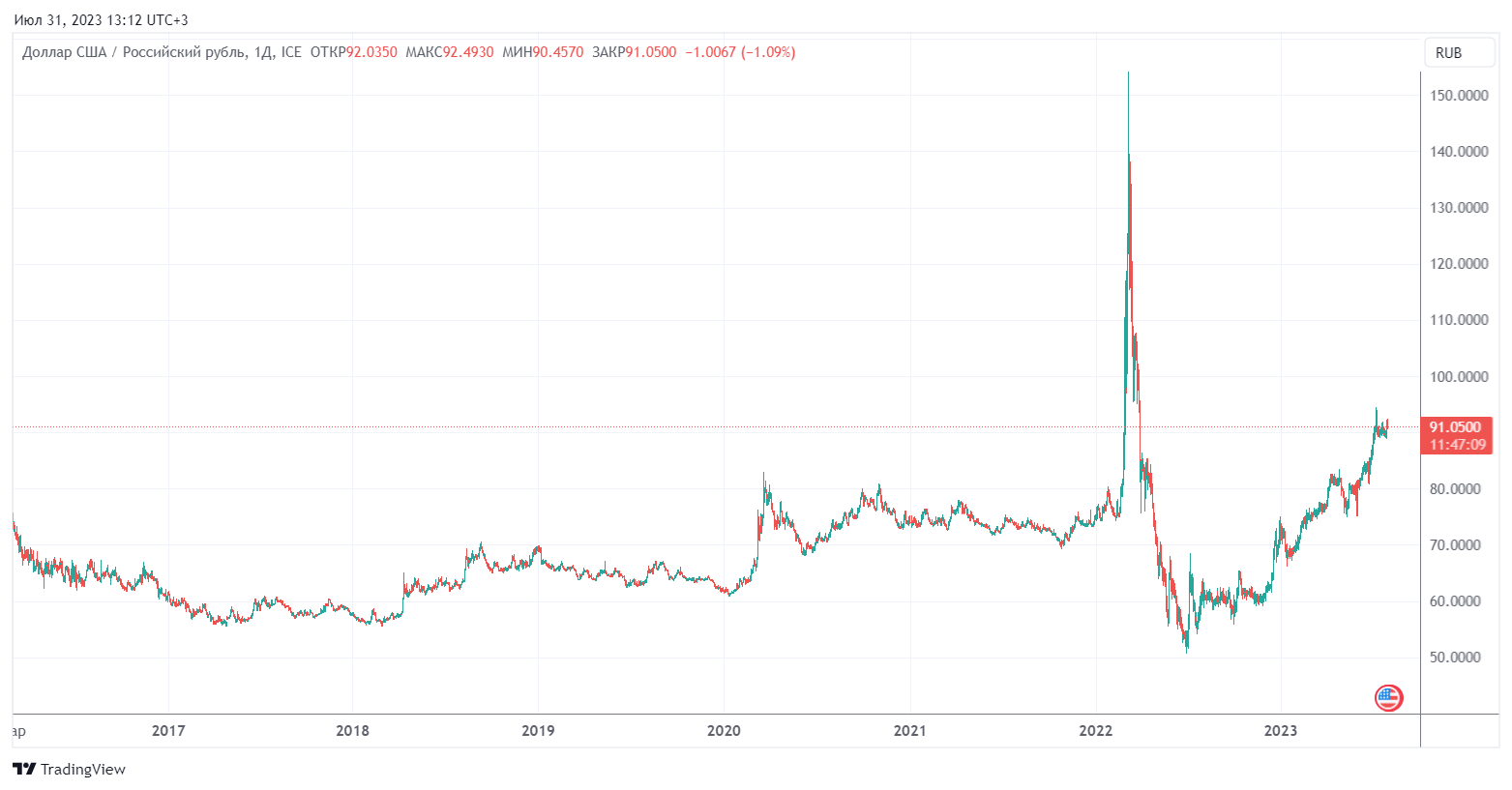 Учитывая упомянутые факторы, наш собеседник прогнозирует доллар по 87-88 рублей в августе 2023 года, с возможными скачками до 90 рублей. При этом в долгосрочной перспективе Ксения Левицкая не исключает укрепление рубля до 75-80 руб. за доллар.