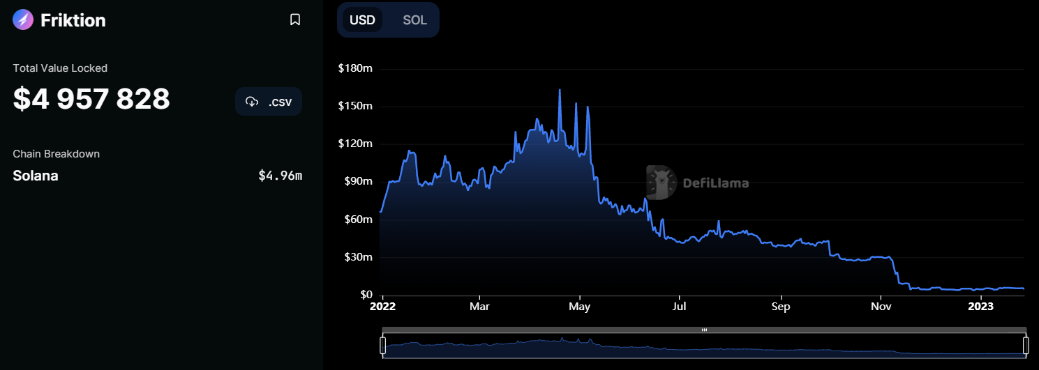SponsoredПо данным площадки DefiLlama, начиная с ноября 2022 года капитал на балансе Friktion стал существенно сокращаться. Если в апреле 2022 года на счетах протокола пользователи разместили свыше $120 млн, то по состоянию на январь 2023 года площадка хранит менее $5 млн.