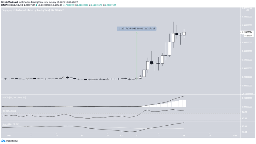 AVAX прорвал нисходящую линию сопротивления и 8 января преодолел горизонтальный барьер. С тех пор монета вышла в параболический рост.