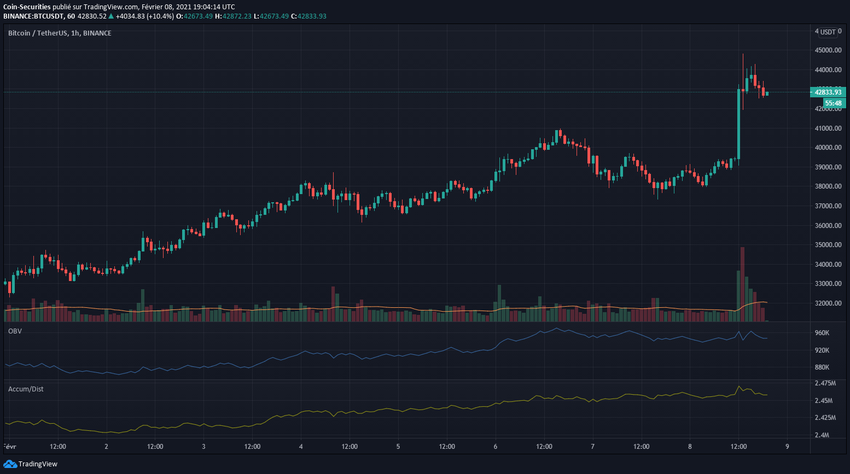 В понедельник, 8 февраля, был зафиксирован пик среднесуточного объема торгов на уровне $73,3 млрд. Ралли обусловлено серией бычьих новостей по BTC, в том числе и по рекордным максимумам на рынке фьючерсов.
