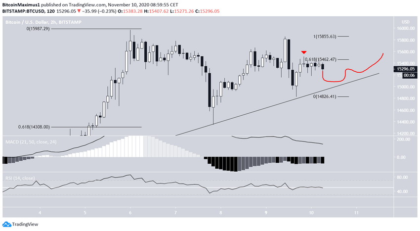 Это снижение прекратилось, как только цена достигла линии восходящей поддержки, которая присутствует на графике со 2 ноября. Вышеупомянутая область сопротивления и данная поддержка образуют восходящий треугольник. Этот паттерн считается бычьим, что дает основания ожидать бычьего прорыва.