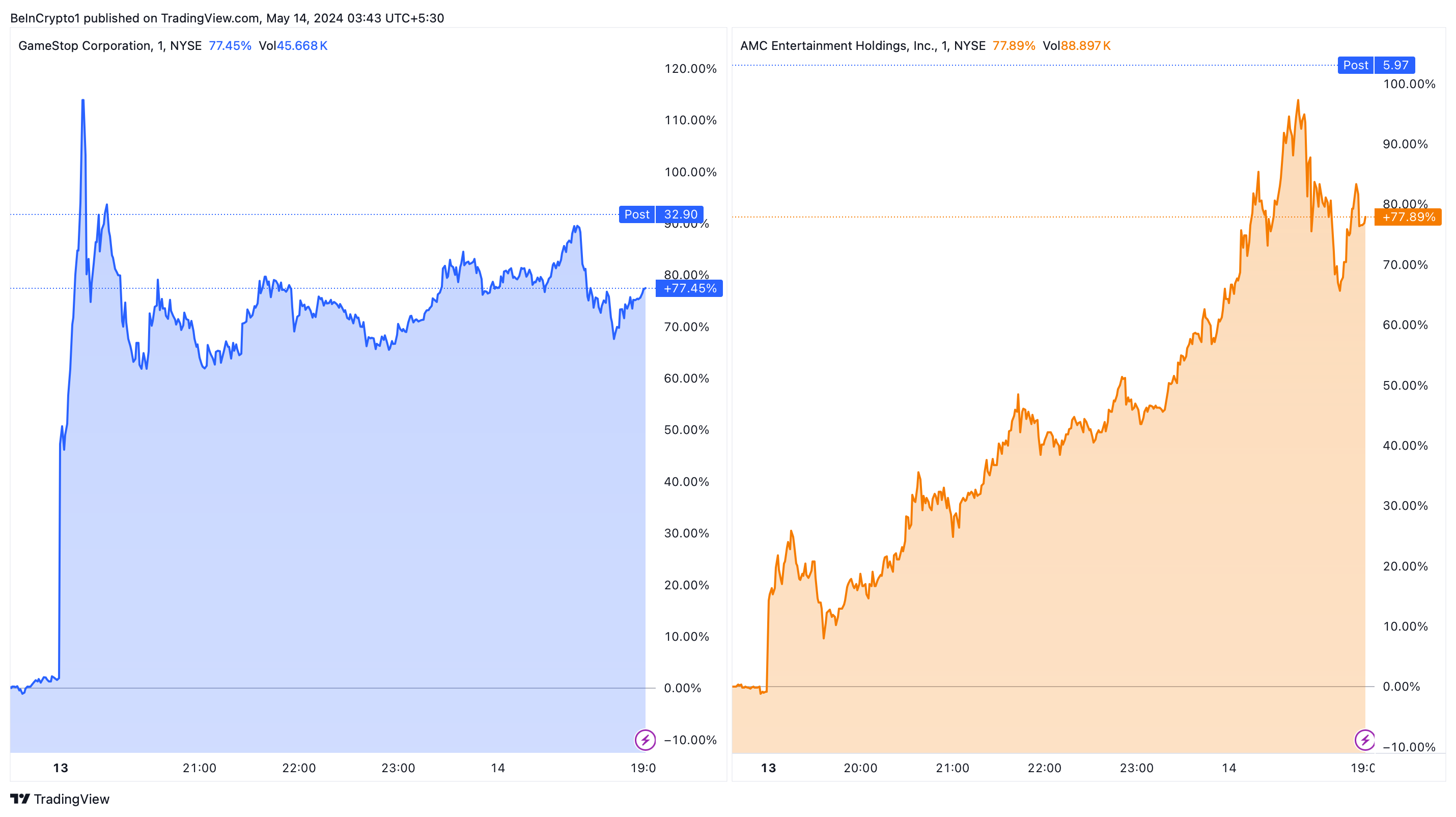 Поста Гилла в «Твиттере» оказалось достаточно для того, чтобы акции GameStop и AMC Entertainment выросли на 77,5% и 77,9% соответственно. Публикация стала первым публичным действием Roaring Kitty с момента его последнего появления онлайн примерно три года назад.