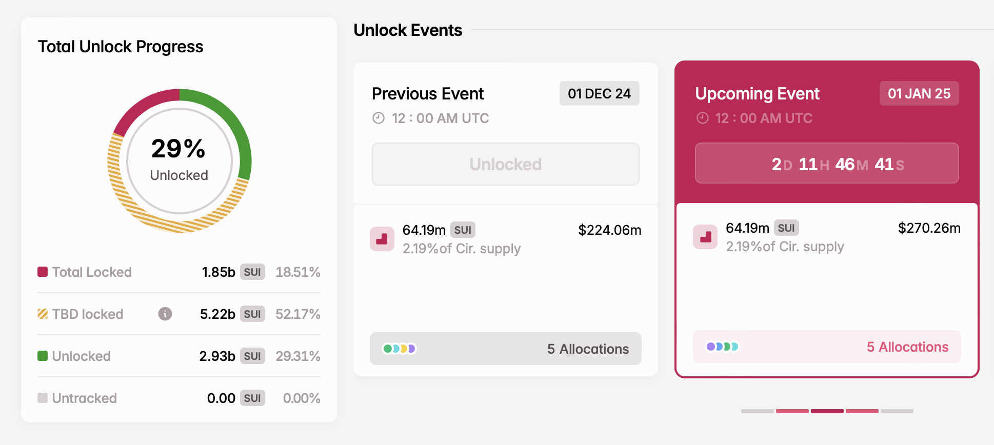 Ближайший разлок SUI произойдет 1 января. Часть «размороженных» токенов распределят между участниками инвестиционных раундов серии А и B, остальные же монеты отправят в резерв сообщества и казначейство Mysten Labs.
