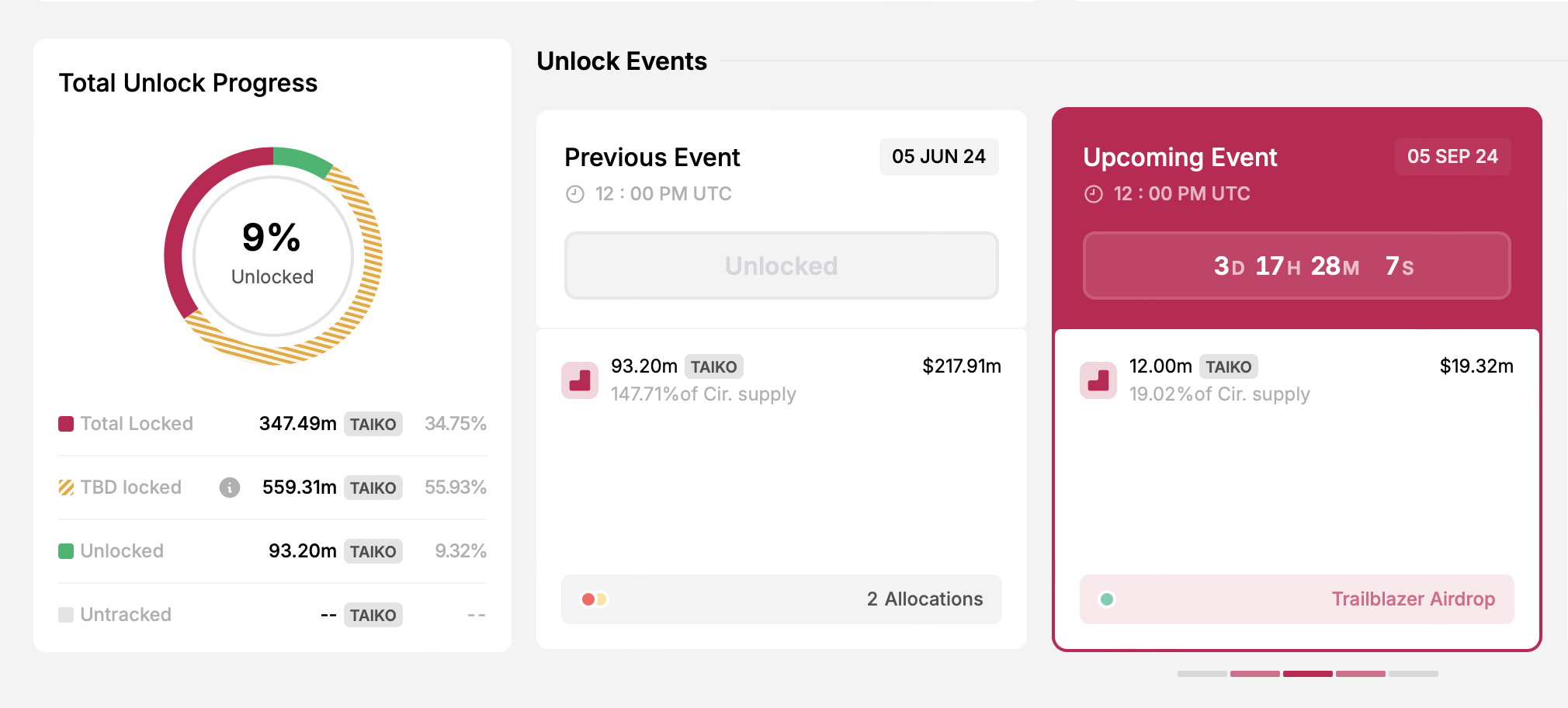 - Количество разблокированных токенов: 12 млн TAIKO