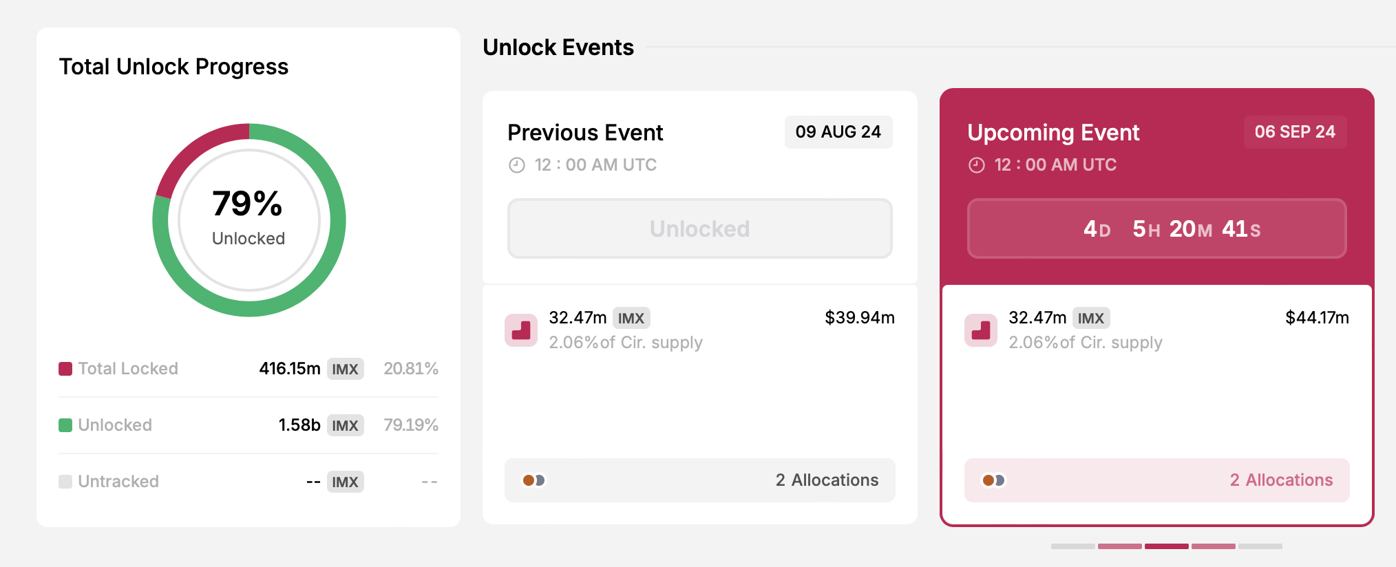 - Количество разблокированных токенов: 32,47 млн IMX