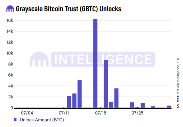 Разморозка акций биткоин-трастра Grayscale Bitcoin Trust (GBTC) не окажет сильного влияния на биткоин. Такое мнение эксперты аналитического отдела Kraken Intelligence озвучили в последнем отчете.
