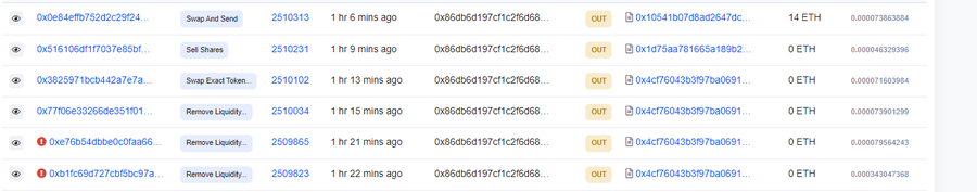 По данным UniswapVillain, AzFlin вывел 14 ETH из сети Base с помощью HOP.