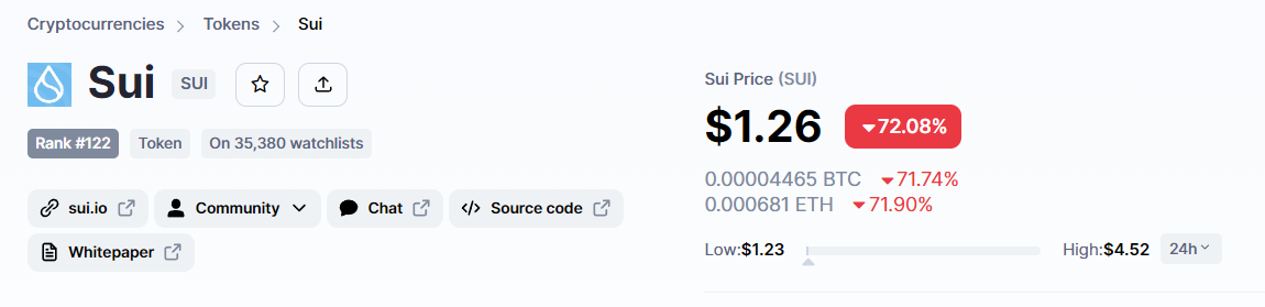На момент написания материала трудно оценить влияние запуска сети на котировки токена SUI. Например, согласно данным CoinMarketCap, курс SUI за последние 24 часа рухнул более чем на 70% с $4 до $1,2.