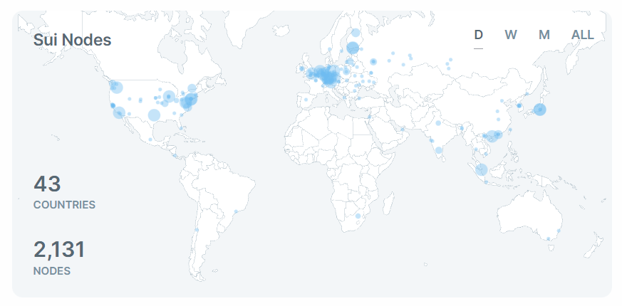 Криптовалютный проект Sui Network обзавелся рабочей главной сетью (mainnet). Об этом представители Sui Foundation сообщили в официальном пресс-релизе. Помимо главной сети, которая поддерживает токен SUI, разработчики также развернули блокчейн-эксплорер Sui Explorer. Согласно его показателям, в Украине развернуто пять нод, а в РФ в пятнадцать. Всего ноды развернуты в 43 странах, а наибольшая концентрация зафиксирована в Европе.