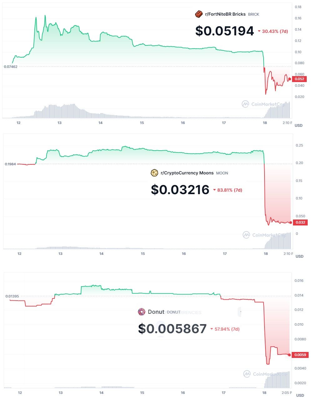 Криптовалюты Reddit отреагировали на новость о закрытии Community Points падением на 30-80%. Монеты тесно привязаны к своим сабреддитам. В случае, если им не найдут альтернативные варианты применения, криптовалюты могут полностью обесцениться и ударить по кошельку пользователей социальной сети.