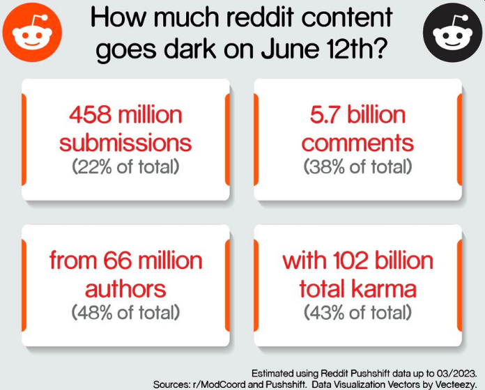Почти половина всего Reddit’а ушла в закрытый режим доступа в рамках забастовки из-за изменений правил пользования сайтом. Масштаб забастовки опубликовал у себя в «Твиттере» пользователь под ником @aakashg0.