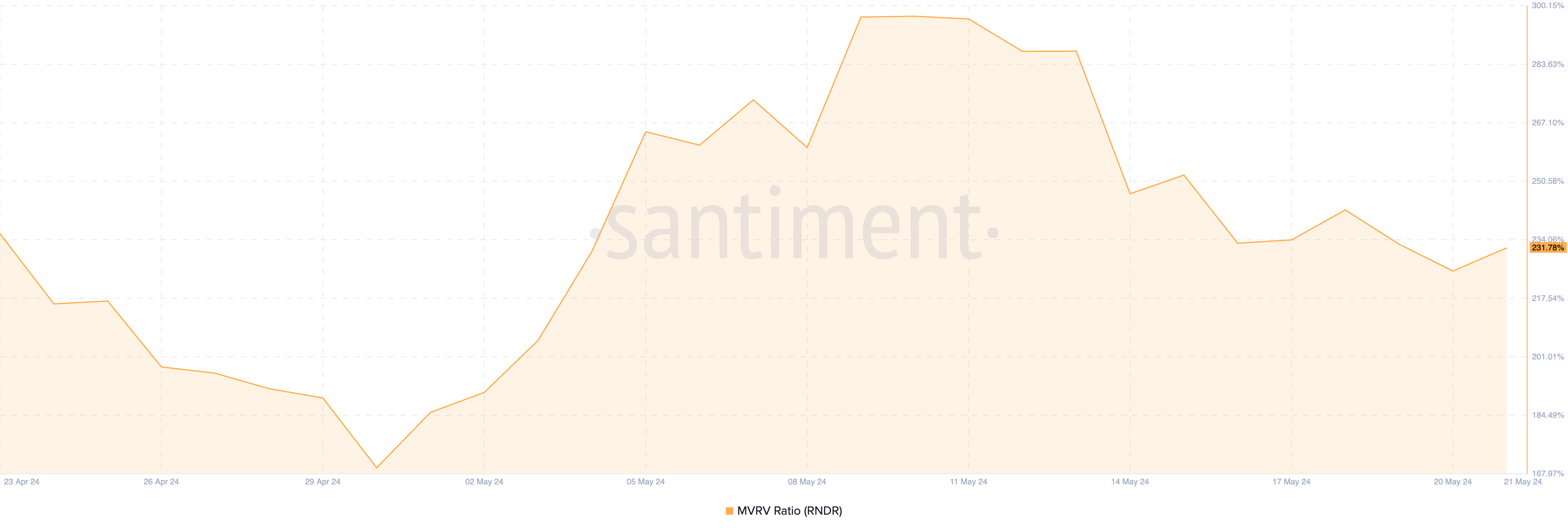 Кроме того, соотношение рыночной стоимости к реализованной стоимости (MVRV) токена составляет 231,78%, подчеркивая потенциальное давление продаж.