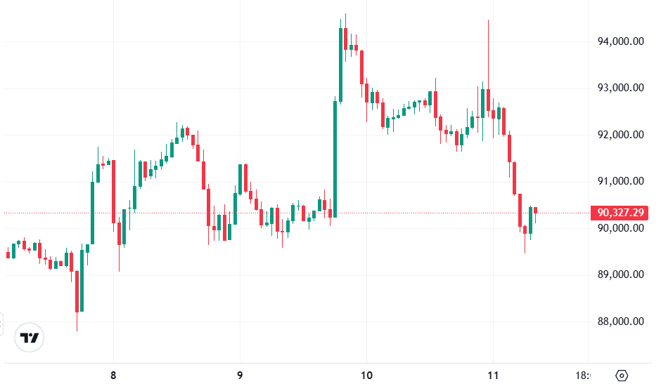 Биткоин отреагировал снижением до $89 459. Позже цена поднялась к $90 327, но рынок сохранил настороженный тон. Падение охватило и другие крупные монеты: Ethereum, BNB, Solana, XRP и остальные представители топ-10 также подешевели.