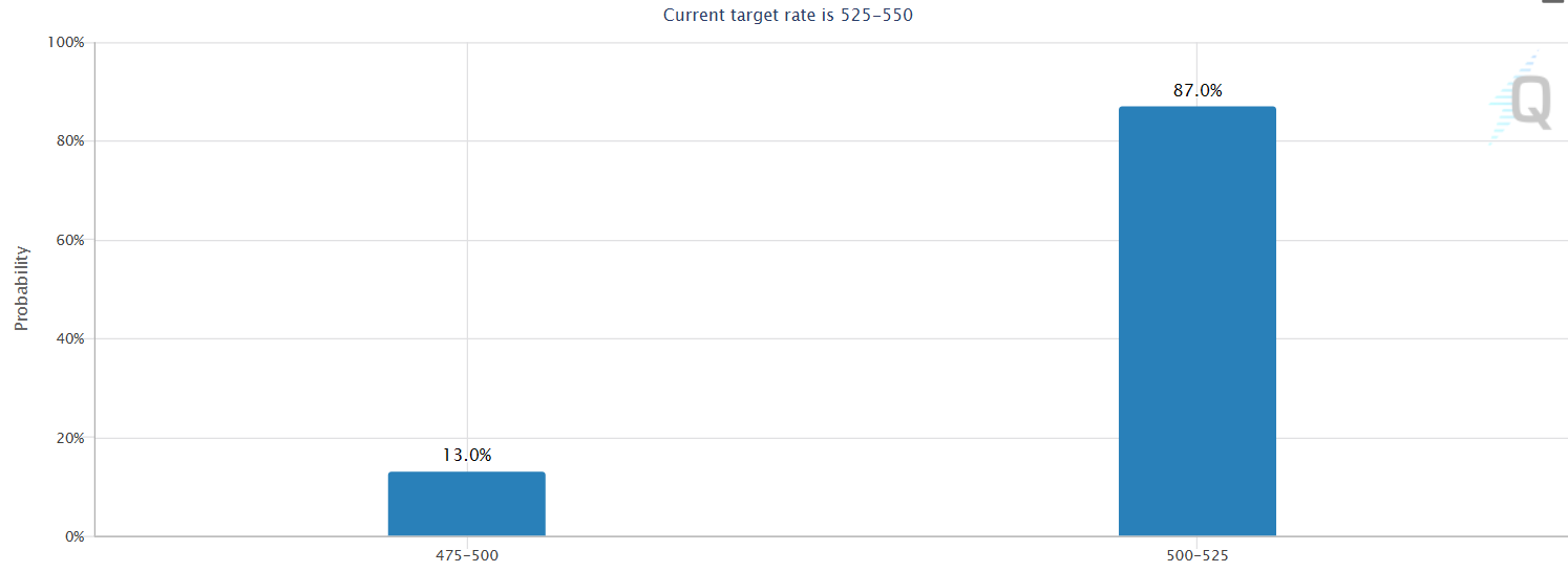 Большинство, 87%, ждут снижения ставки на 25 б.п. Только 13% предполагают, что стоит готовиться к более масштабному снижению на 50 б.п. — до диапазона 475-500.