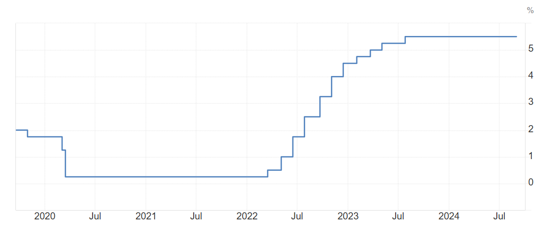 Участники рынка ждут перехода ФРС к снижению ключевой процентной ставки на следующем заседании, результаты которого объявят 18 сентября 2024 года. Американский финансовый регулятор начал наращивать ставку весной 2022 года в рамках борьбы с инфляцией. Последнее повышение пришлось на июль 2023 года.
