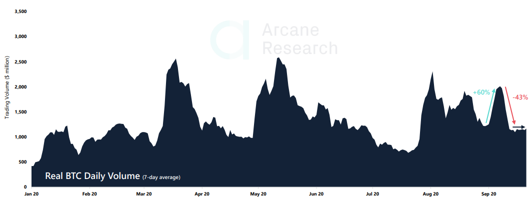 Тем не менее аналитики Arcane Reseach ожидают ухудшения рыночной ситуации, поскольку недавний обвал цены биткоина не повлиял на объемы торгов.