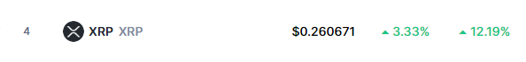 SponsoredВ суточном таймфрейме курс XRP/USDT вырос на 3,33% до $0,260. В недельном масштабе токен компании Ripple поднялся на 12%.