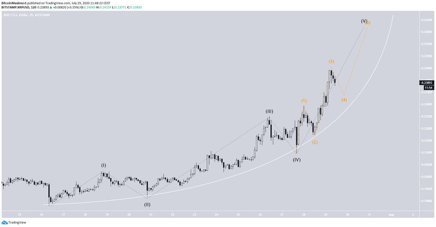 Предполагаемое нами снижение может оказаться подволной 4 в рамках данной волны, а затем финальный рост отправит цену к $0.270.