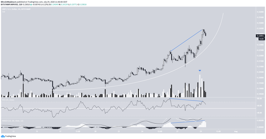 Курс XRP с 16 июля рос вдоль параболической линии восходящей поддержки. Такой рост не бывает устойчивым в долгосрочной перспективе, однако какое-то время пара может еще продолжать это движение.