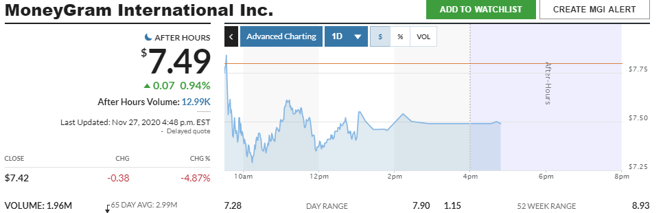 Акции MoneyGram стали расти в цене после того, как Ripple приобрела долю компании. В июне 2019 года Ripple купил акции MoneyGram по 4,10 доллара за штуку. На сегодняшний день одна простая акция MoneyGram составляет $7,49.