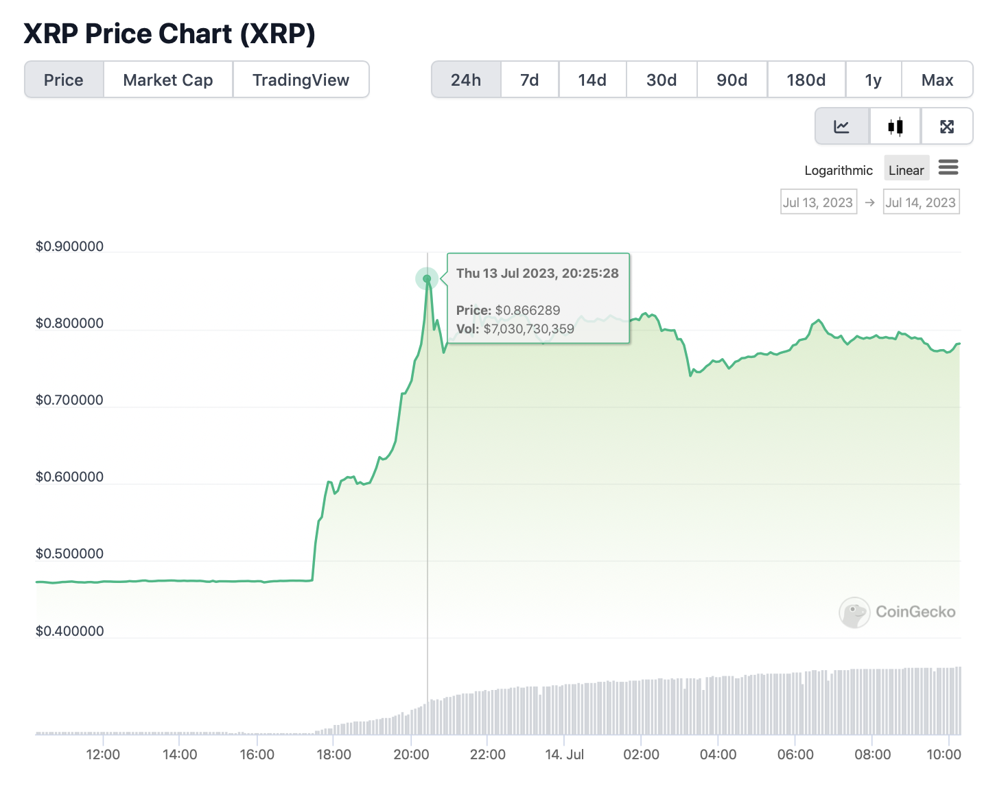 Окружной судья США Анализа Торрес постановила, что компания Ripple не нарушила федеральное законодательство о ценных бумагах, продавая XRP на криптобиржах. Решение привело к резкому росту цены актива: после его оглашения котировки токена взлетели на десятки процентов.