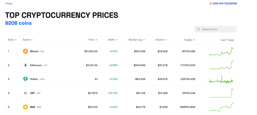 На фоне победы Ripple в суде крипторынок вышел в рост, а в топ-100 самых капитализированных криптовалют лучший результат был ожидаемо зафиксирован у XRP. Рост монеты в моменте достигал почти 100%. Позднее стало известно, что вчерашний рост XRP обошелся шортистам в $290 млн.