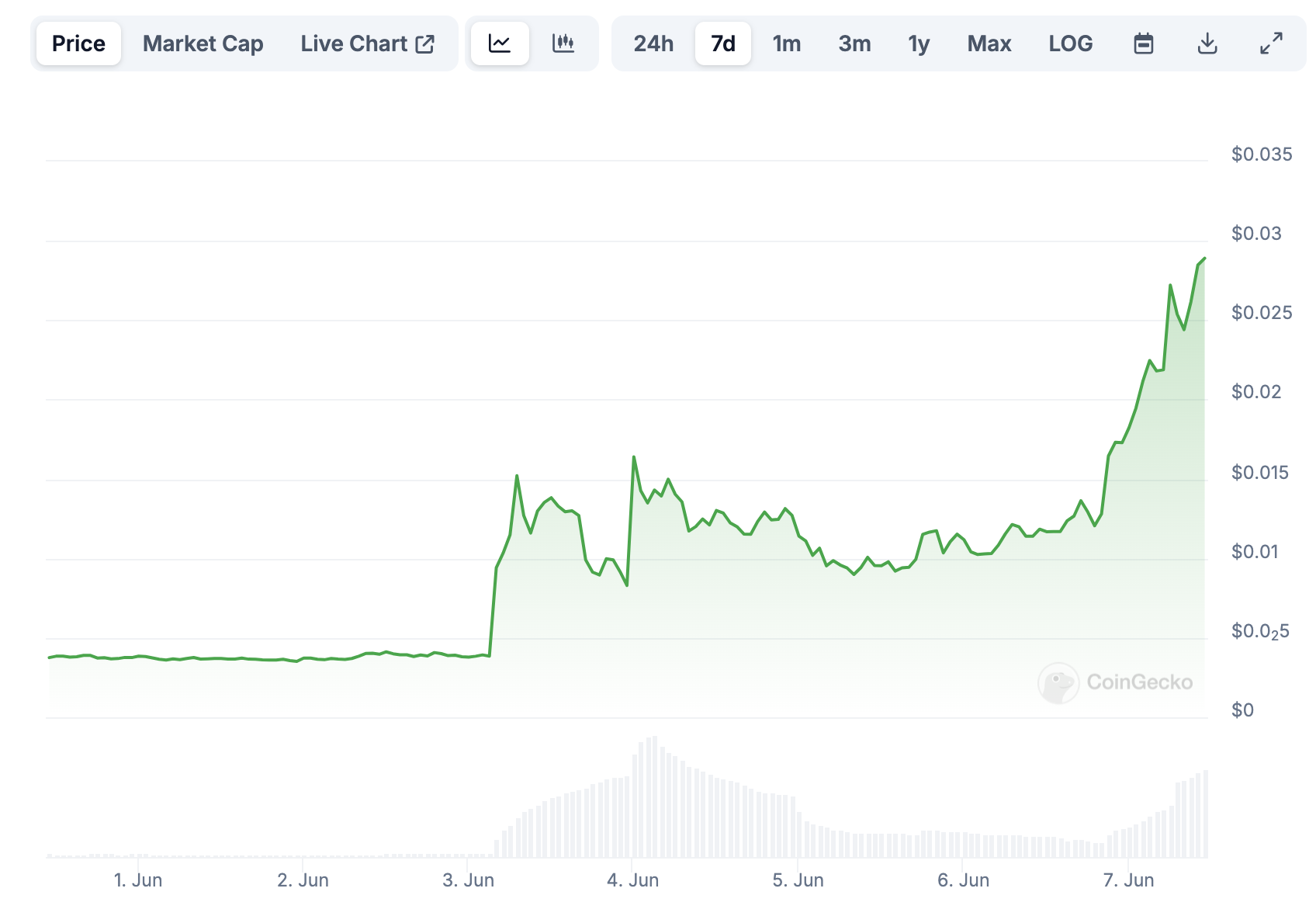 Аналогичную динамику продемонстрировала еще одна «мемная» монета — Roaring Kitty (KITTY), запущенная менее месяца назад. За последние сутки актив прибавил в цене более 253%, а за неделю — 1 140%. Сейчас стоимость KITTY составляет $0,03224, а объем торгов превышает $24,6 млн. Однако на странице CoinGecko сказано, что токен Roaring Kitty под тикером KITTY не связан с Китом Гиллом.