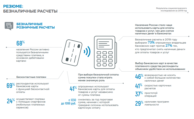 SponsoredТакже регулятор опубликовал результаты социологического исследования за 2019 год. Согласно им, 2/3 населения перешли на безналичные розничные расчеты.