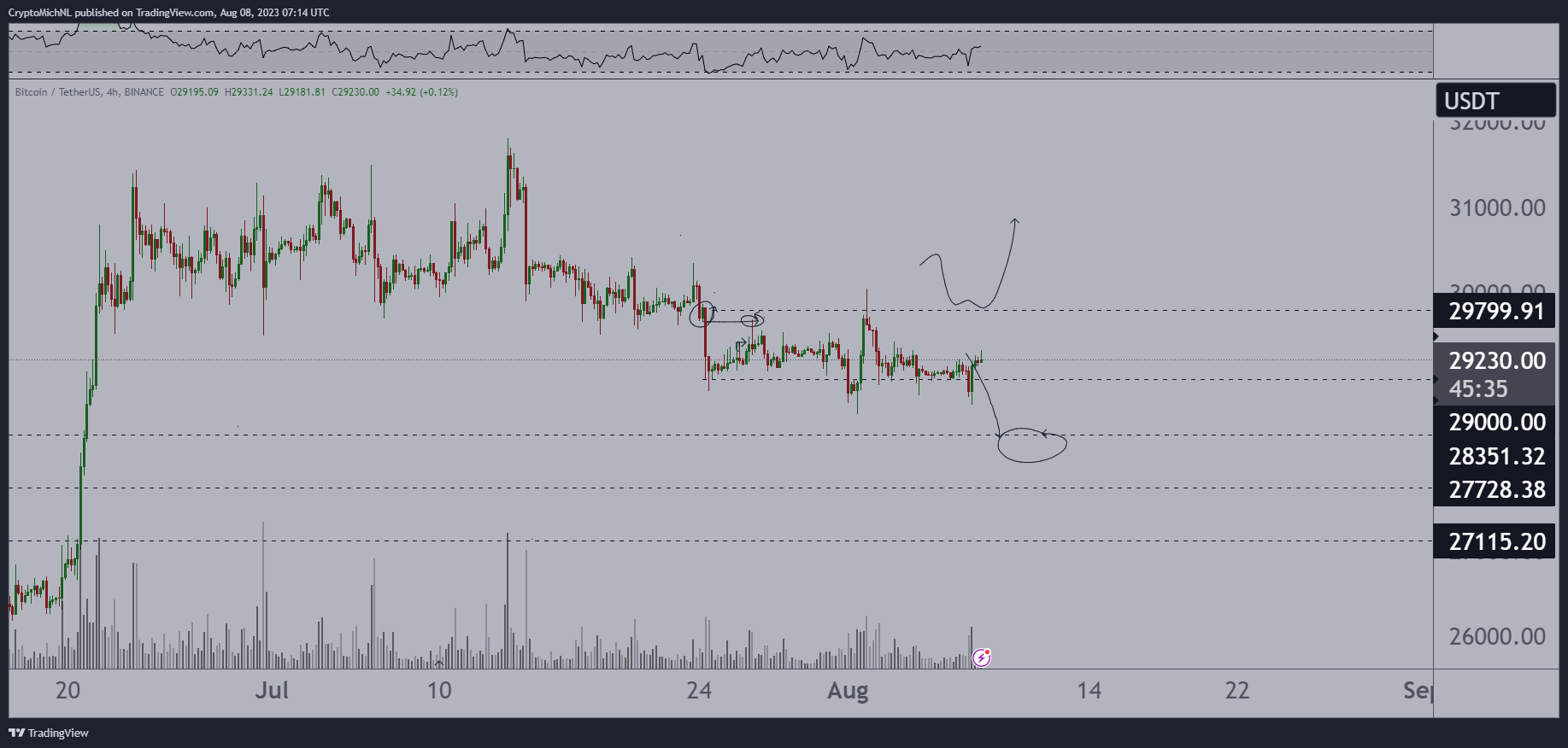 SponsoredАналитик Майкл ван де Попп считает, что крайне важным для BTC стал прорыв уровня $29 700. По его мнению, преодоление обозначенной высоты открывает перед биткоином перспективы дальнейшего роста. Предполагаемую траекторию движения монеты он обозначил на графике.