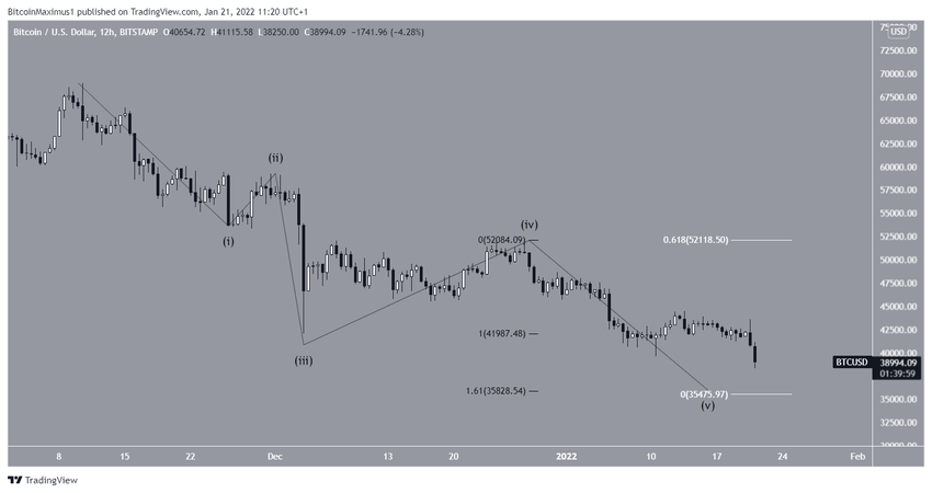 Биткоин (BTC) обновил исторический максимум на $69 000 в ноябре 2021 года и с тех пор снижается. Сначала, 10 января цене удалось совершить отскок, но она так и не смогла развить рост и 21 января прорвалась под отметку $40 000. Локальный минимум был сформирован на $38 250.