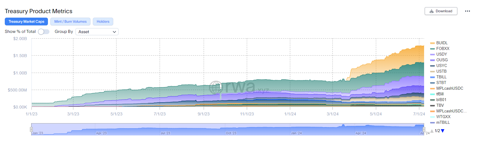 Общий рынок токенизированных казначейских обязательств также продемонстрировал позитивные результаты. Его капитализация подскочила с $572,40 млн до $1,79 млрд.
