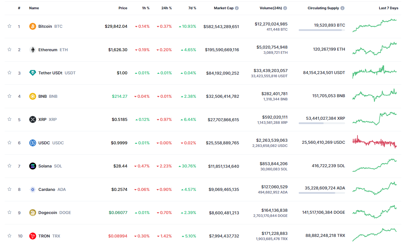 - По итогам уходящей недели монеты, входящие в топ-10 крупнейших по рыночной капитализации криптовалют, единодушно продемонстрировали положительную динамику. Весь крипторынок вышел в рост в пятницу на фоне отказа SEC от судебной тяжбы с Ripple, которая длилась с декабря 2020 года.