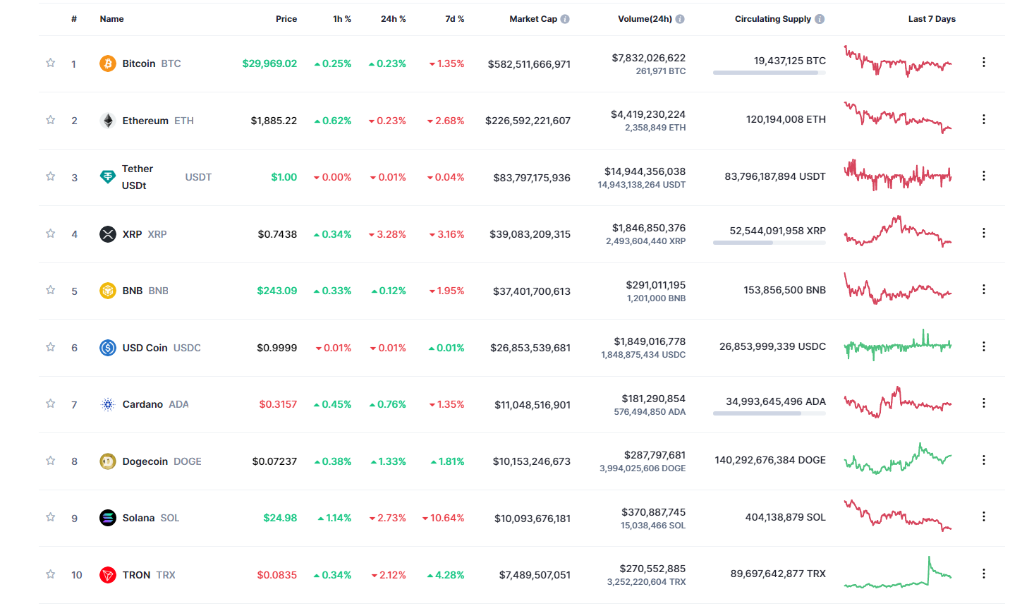 По итогам уходящей недели монеты, входящие в топ-10 крупнейших по рыночной капитализации криптовалют, продемонстрировали преимущественно отрицательную динамику. Самые большие потери в первой десятке криптовалют на момент написания нес токен Solana (SOL). Он потерял за 7 дней почти 11%.