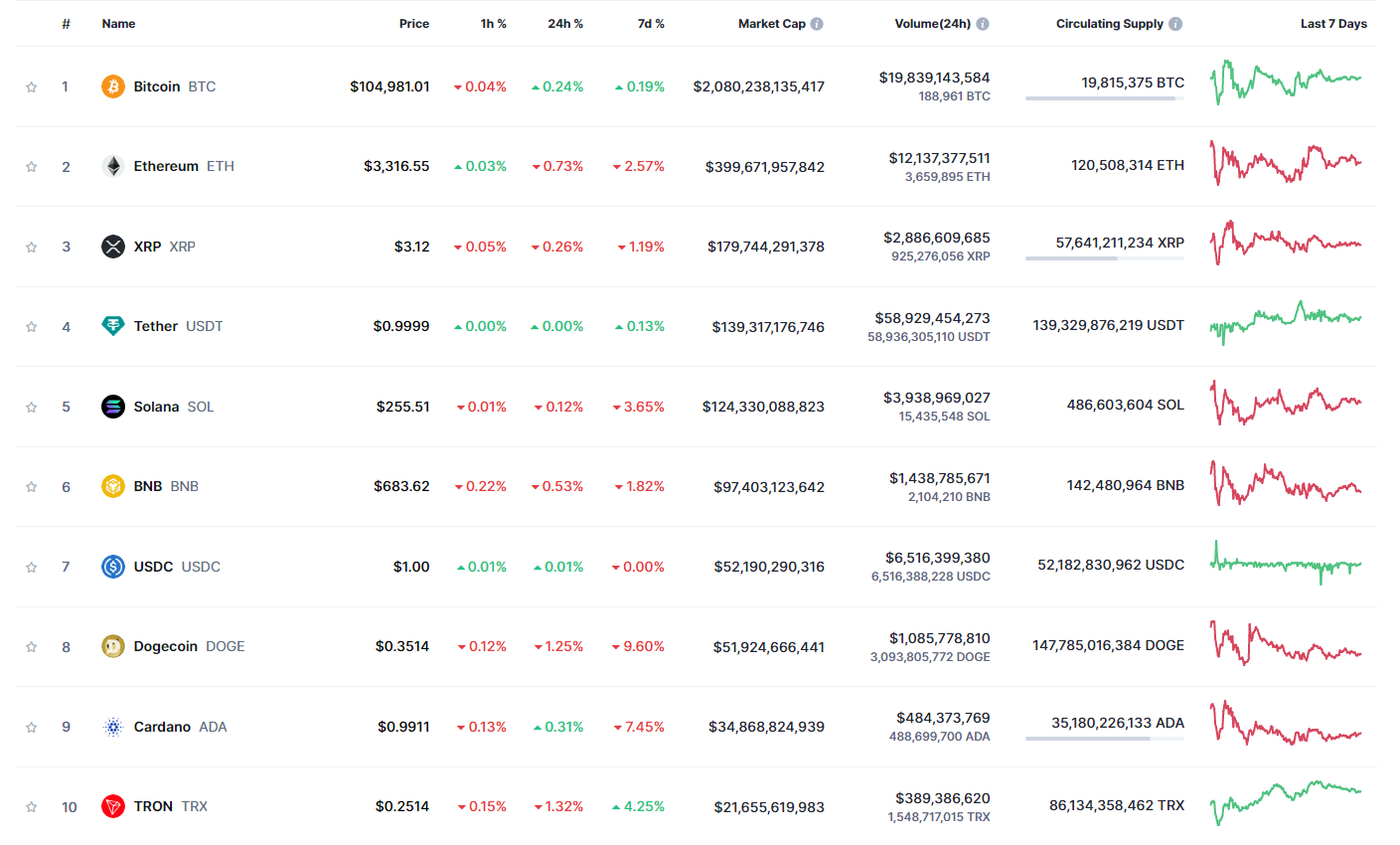 По итогам уходящей недели монеты, входящие в топ-10 крупнейших по рыночной капитализации криптовалют, продемонстрировали разнонаправленную, но преимущественно слабовыраженную динамику.