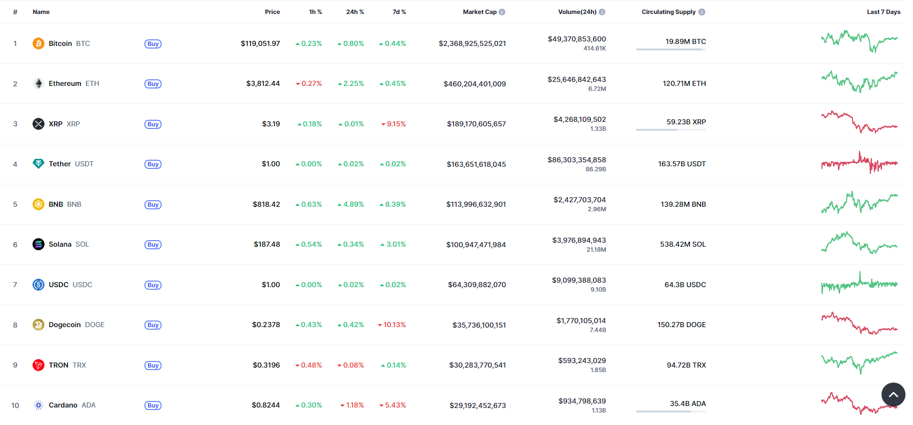 Биткоин (BTC) около десяти дней консолидировался в боковом диапазоне $116 000 – $120 000 после обновления АТН 14 июля. Однако в преддверии выходных он впервые опустился под нижнюю границу этого диапазона. Давление на цену оказывали старые неактивные кошельки, которые пришли в движение, а также отток средств из спотовых биткоин-ETF. Технические аналитики BeInCrypto пишут, что на графике сформировался «крест смерти», а ключевая поддержка находится на $113 000. По данным Сoinmarketcap, на момент написания BTC торговался в районе $119 050, с символическим внутринедельным повышением на 0,44%.