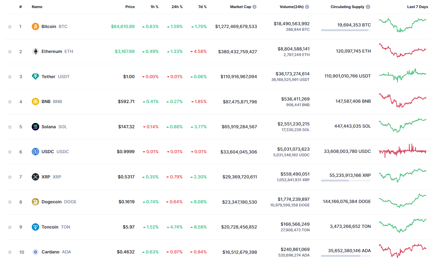 Главная криптовалюта мира, биткоин (BTC), на момент написания торговалась, по данным Сoinmarketcap, в районе $64 610, с повышением на 1,7%, однако в течение недели монета демонстрировала повышенную волатильность.