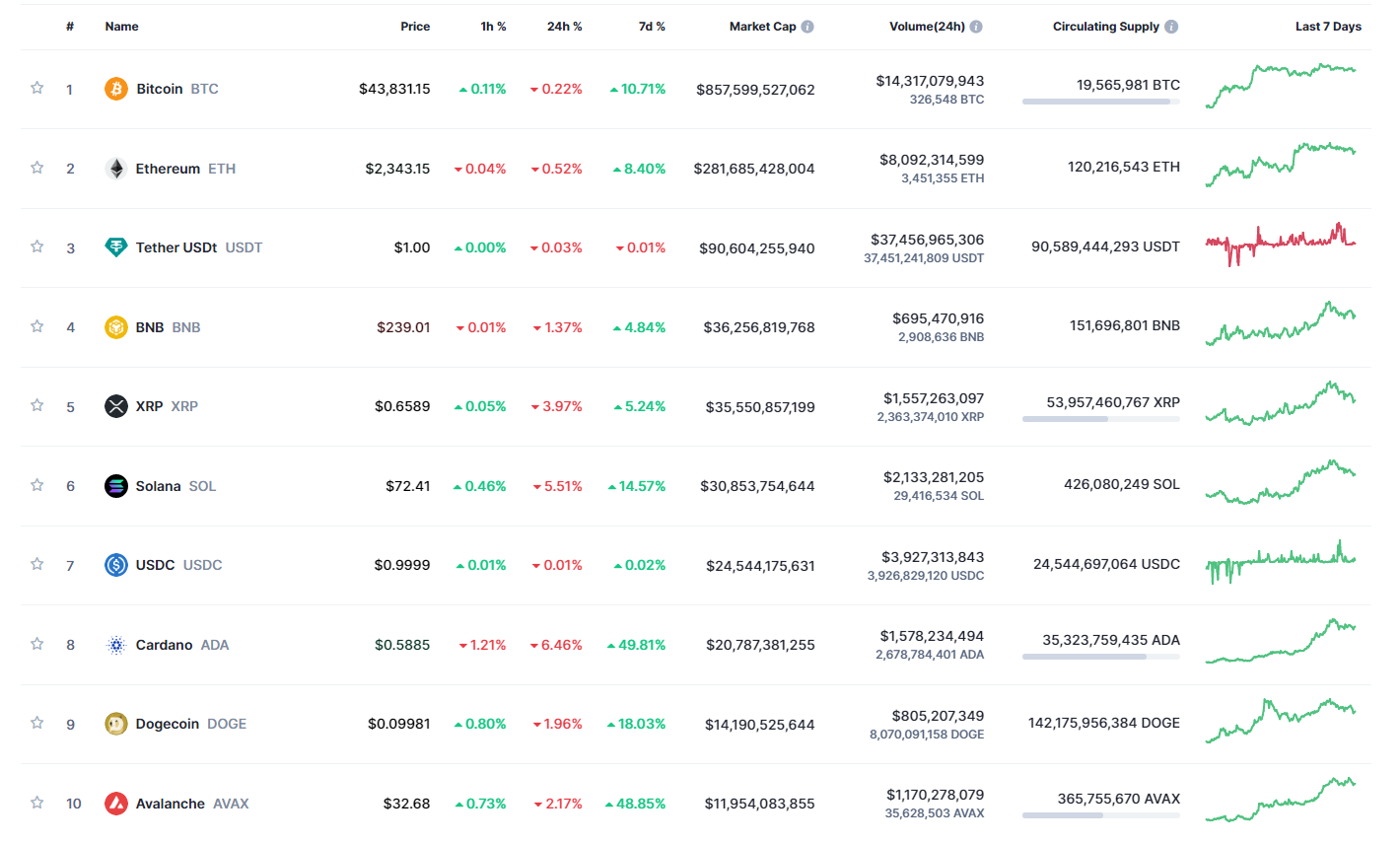 - По итогам уходящей недели монеты, входящие в топ-10 крупнейших по рыночной капитализации криптовалют, продемонстрировали уверенную положительную динамику.