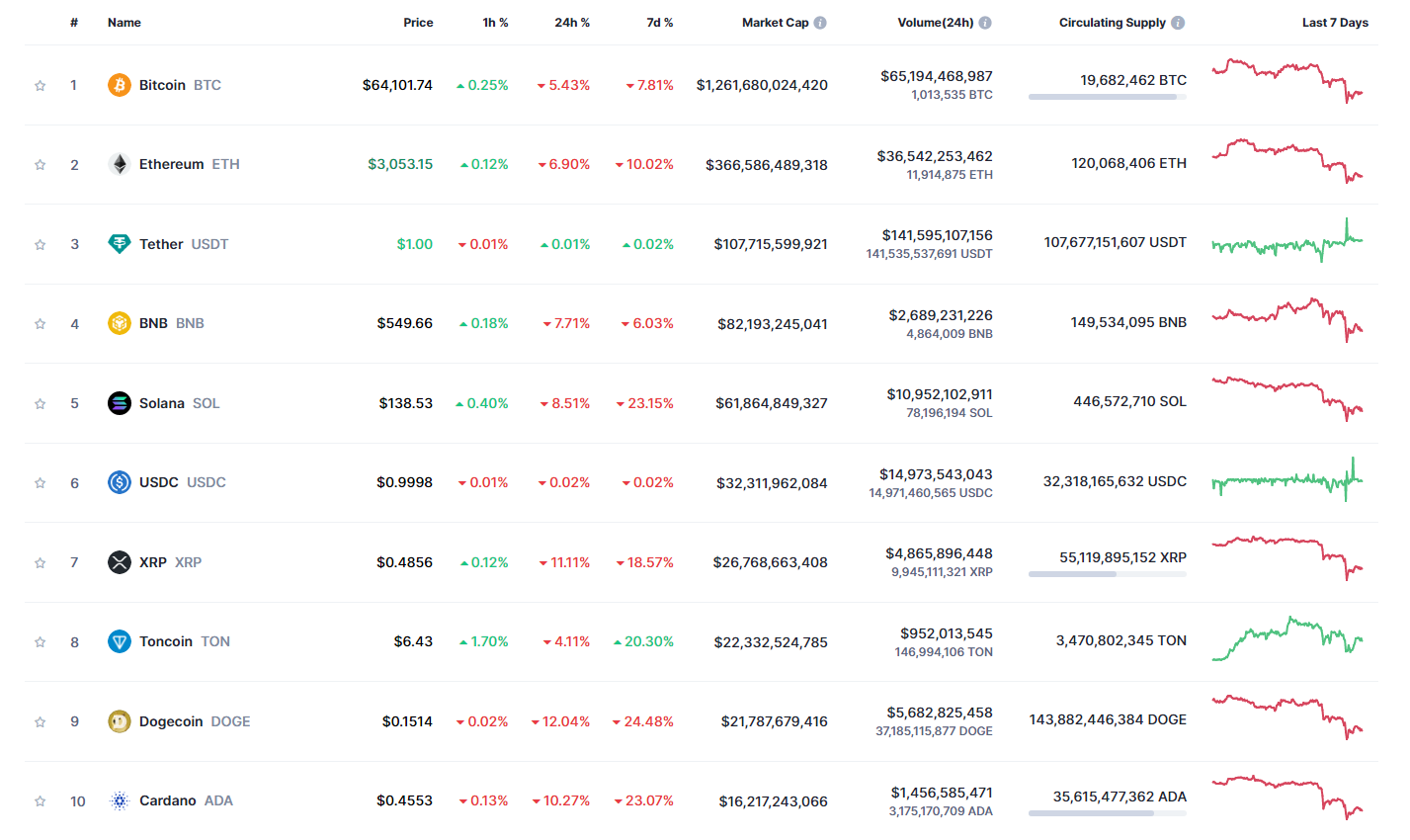 Однако в ночь на воскресенье цена BTC рухнула в район $61 500. Причиной панической распродажи стала эскалация конфликта на Ближнем Востоке между Ираном и Израилем. В результате общая сумма ликвидаций на крипторынке за 24 часа превысила $940 млн. На момент написания монета уже нащупала почву под ногами и торговалась в районе $64 100, с понижением на 7,8%, по данным Сoinmarketcap.
