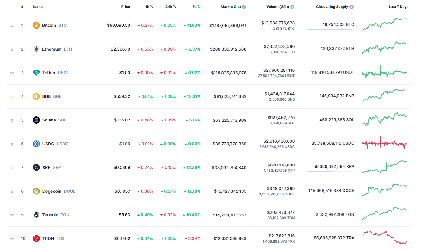 Единственной монетой из топ-10 криптовалют, оказавшейся в минусе, стал токен Tron (TRX). На момент написания он торговался, по данным Сoinmarketcap, в районе $0,1492 с внутринедельным понижением на 2,34%. Вероятно, актив корректируется после недавнего агрессивного роста, связанного с запуском площадки для создания мемкоинов SunPump.