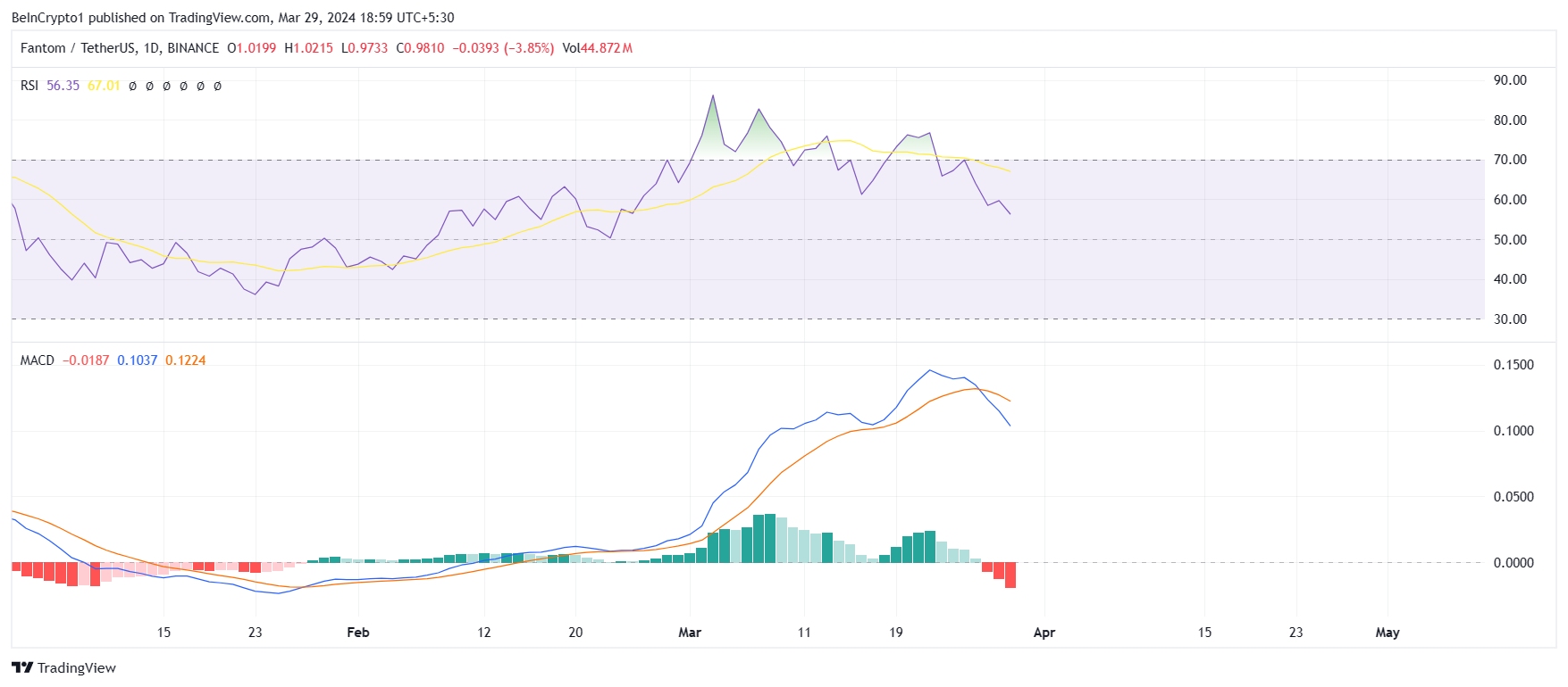 Согласно ему, актив просядет до ценового уровня основания 3, поскольку FTM не смог пробить сопротивление $1,12.