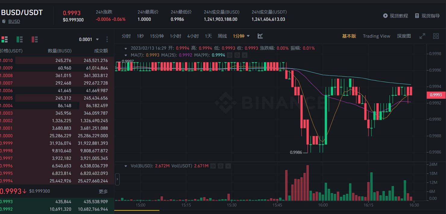 На фоне выхода новости о том, что Paxos прекратил эмиссию криптовалюты Binance USD, BUSD, в паре с самым капитализированным стейблкоином Tether (USDT), вышел в падение.