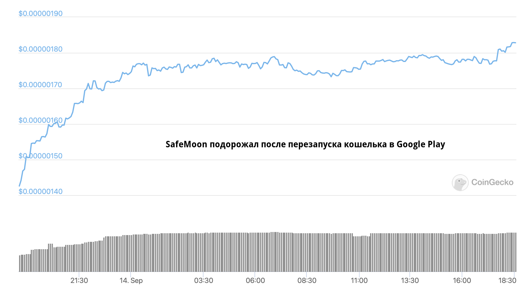 SponsoredНа фоне анонса о перезапуске кошелька цена нативного токена safemoon (SAFEMOON) подскочила более чем на 28%. На момент написания материала SAFEMOON/USDT торгуется по цене $0,00000183. Рыночная капитализация проекта перевалила за отметку в $1 млрд, а среднесуточный объем торгов превышает $12 млн.