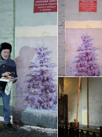 В центре Москвы отечественный художник Никас Сафронов нарисовал свой первый стрит-арт в виде елки на стене в Брюсовом переулке. Однако, как сообщает Telegram-канал Mash, коммунальные службы быстро закрасили работу художника.