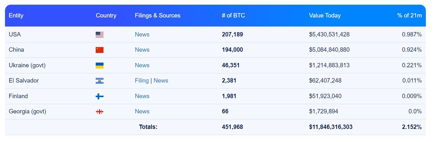 Интересно! По состоянию на момент написания обзора, под контролем Сальвадора 2381 биткоинов. Для сравнения, у властей США — 207 189 BTC.