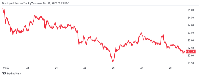 На фоне падения сети котировки SOL в торговой паре SOL/USD рухнули более чем на 12% до $22,3, по данным TradingView. Рыночная капитализация альткоина обвалилась до $8,4 млрд.
