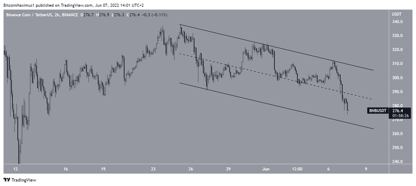 На 2-часовом графике BNB, возможно, торгуется внутри нисходящего параллельного канала, хотя линия поддержки этого паттерна еще не проверялась рынком на прочность достаточное количество раз.