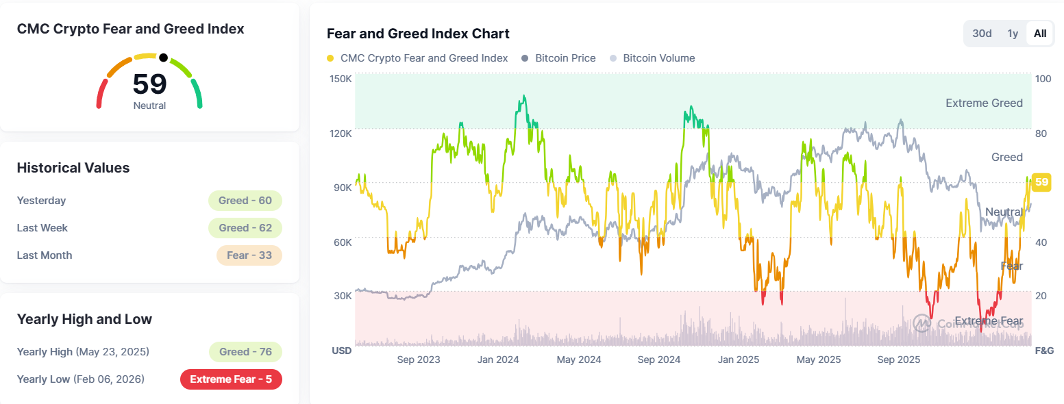 - Настроения рынка: индекс страха и жадности поднялся до 61 (территория «жадности»).